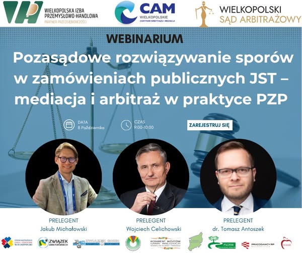 WEBINARIUM: Pozasądowe rozwiązywanie sporów w zamówieniach publicznych JST – mediacja i arbitraż w praktyce PZP